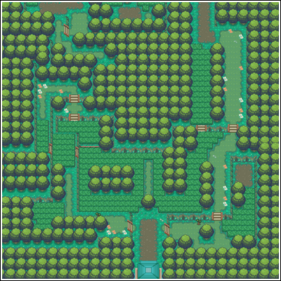 Der Wald umgibt Vertania City vollständig und ist die einzige Verbindungsstrecke zwischen Vertania City und Marmoria City. Die Bäume des Waldes stehen so dicht, dass das Sonnenlicht kaum hindurchbrechen kann. In diesem Wald leben viele Käfer-Pokémon. |